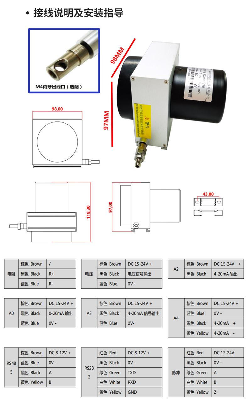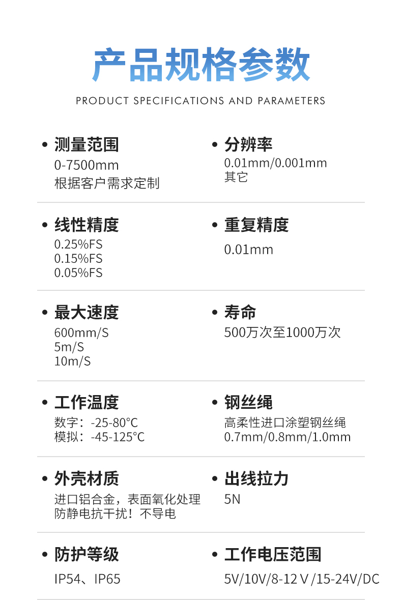 拉繩位移傳感器閘門開度儀高精度拉繩編碼器模擬量數(shù)字量信號輸出電子尺